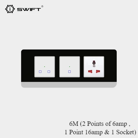 Transform your home with this luxurious Black Plate White Module Smart Switch designed to cover every room and area in your house. This complete set provides elegant and modern control for bedrooms, kitchen, washrooms, living room, foyer, staircase, balcony, and dining area. The smart switches offer seamless integration with home automation systems, allowing you to control lights, fans, and other appliances effortlessly through app or voice commands.